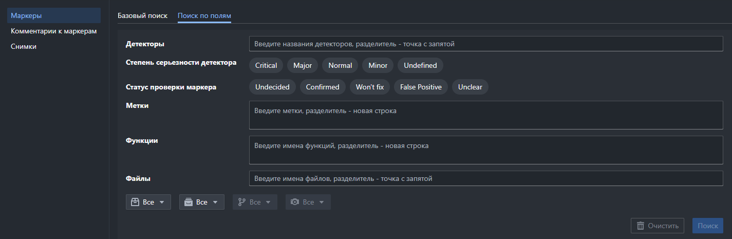 Раздел Поиск. Категория Маркеры. Поиск по полям